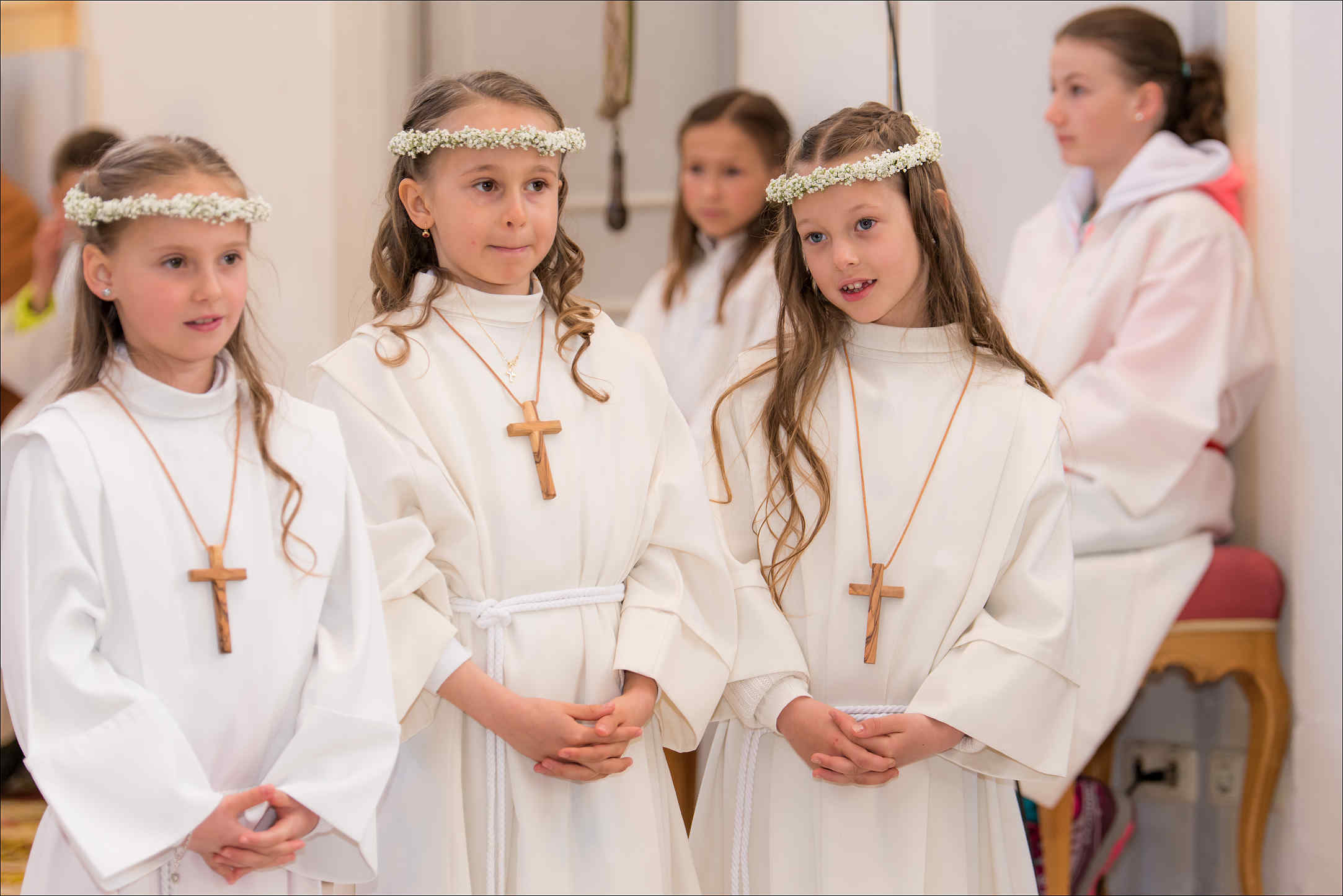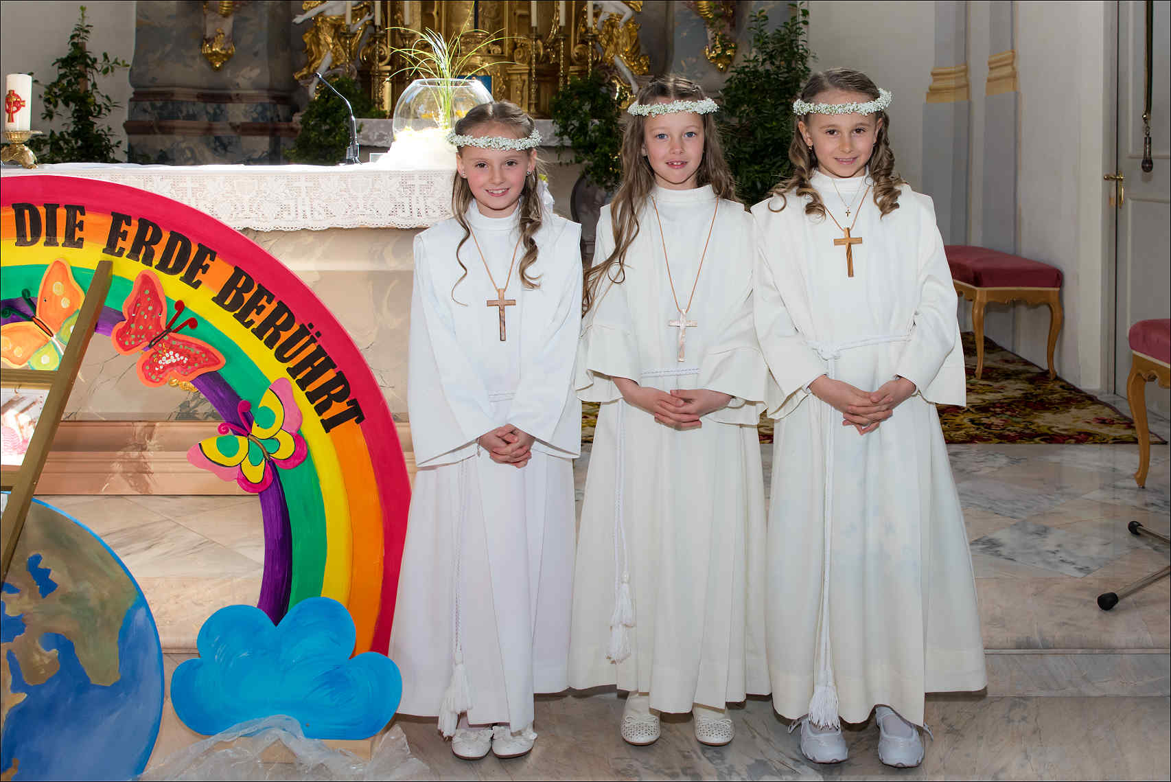 | Unsere drei Mädels | Beim Austeilen der Gebetskarten | |