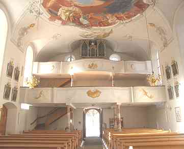 | Der Blick von der Empore aus. | Der Blick nach hinten mit der Orgel. |